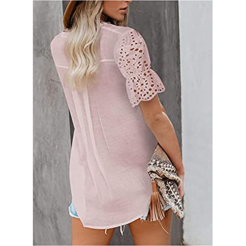 Yatrendy Camicetta in Chiffon da Donna Manica Corta Estate Camicie Casual con Scollo a V Top con Cuciture in Pizzo Bohemien