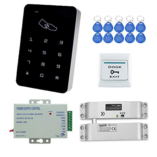 YAVIS Kit Completo di Sistema di Controllo Accessi RFID del Corredo con Serratura Elettrica DC12V Serratura Elettronica Bullone, 3A Alimentatore, Pulsante di Uscita, Schede chiave ID 10 pz