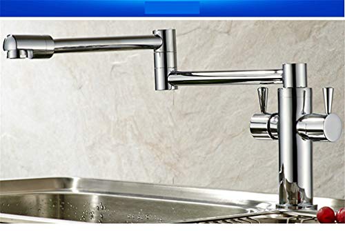 YAWEDA Miscelatore Per Lavabo Rubinetto Da Cucina Pieghevole In Rame Con Aeratore Per Miscelatore Acqua Calda E Fredda 360 Girevole Doppio Manico Montato A Ponte Stile Retrò, Cromato
