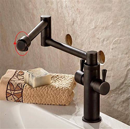 YAWEDA Miscelatore Per Lavabo Rubinetto Da Cucina Pieghevole In Rame Con Aeratore Per Miscelatore Acqua Calda E Fredda 360 Girevole Doppio Manico Montato A Ponte Stile Retrò, Nero