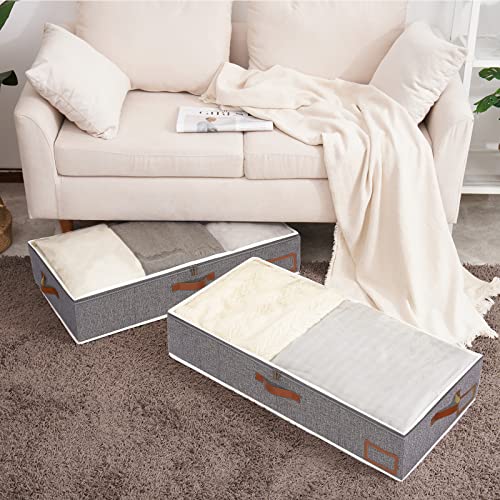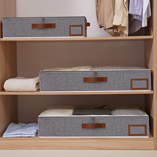 Yawinhe 3 Pezzi Cassetto Sottoletto, Sacchetto Sottoletto, Deposito vestiti, Vestiti pieghevoli con finestra trasparente, Per piumoni, Abbigliamento, 60x30x15cm, Grigio