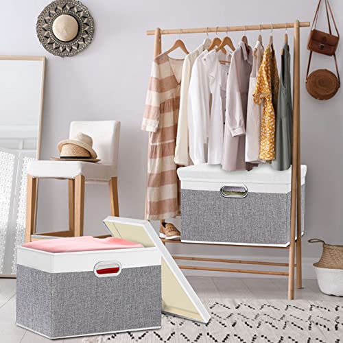 Yawinhe Scatole Portaoggetti con Coperchi, 2-pack Cestino Pieghevole con Coperchio, Contenitore per Armadio, per Conservare Vestiti, 33x23x20cm, Grigio/Bianco, SNK023WG-2
