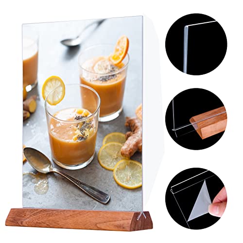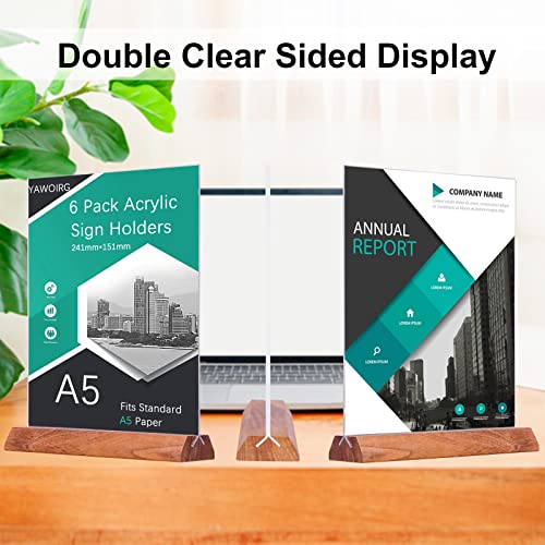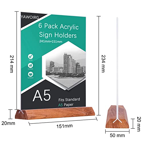 YAWOIRG Porta Menu da Tavolo A5 in Acrilico,6 Pezzi Supporti menù A5 in legno,Espositore A5 da Tavolo,Porta avvisi da Tavolo A5, Porta Poster A5 per Ristoranti per Cartelli Poster per Documenti