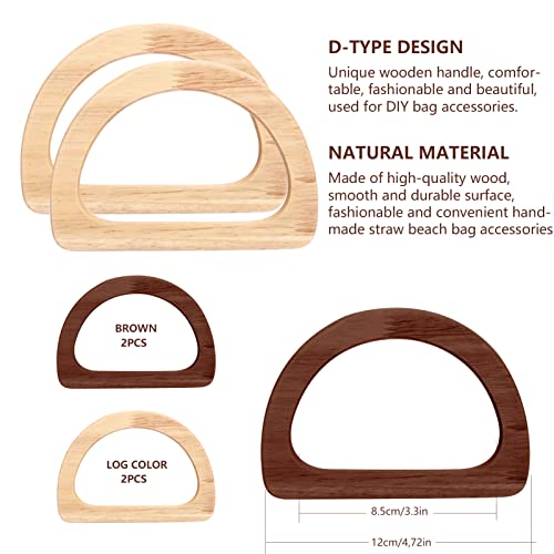 【Maniglie di legno a forma di D】:Unique maniglie di legno marrone perline per accessori di borsa fai da te, accessori perfetti per la sostituzione della maniglia per borse da spiaggia, borse di paglia