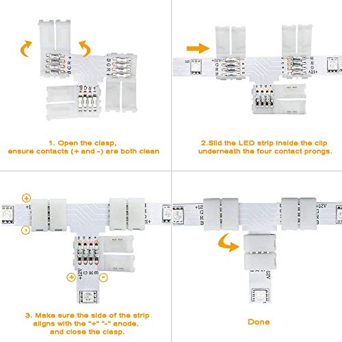 YAYZA! 10-Pack 4 Pin 10mm Connettore a striscia senza saldatura a LED Connettore a splitter rapido Non impermeabile per strisce 5050 5630 4014 RGB - Forma T