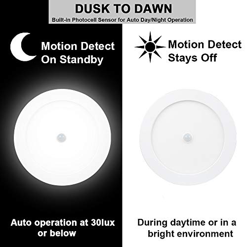 YAYZA! Pannello LED 18W Sensore di Movimento PIR Montaggio Superficiale Plafoniera Tondo 1600lm 150W Equivalente Bianco Caldo/Freddo/Luce Diurna per Garage Corridoio Cantina Portico Corridoio Scale