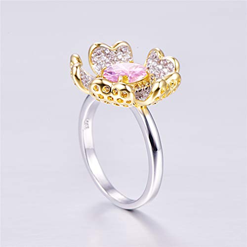 Yazilind - Anello nuziale in argento Sterling 925 con zirconia cubica a forma di fiore e zirconia cubica e Argento, 11, colore: rosa, cod. 1058R9540--6