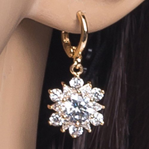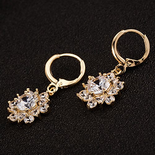 Yazilind - Donne Elegante 18 K Placcato Oro Fiore Hoop Dangel orecchini Zircon Cristallo, colore: bianco, cod. 1076E1258