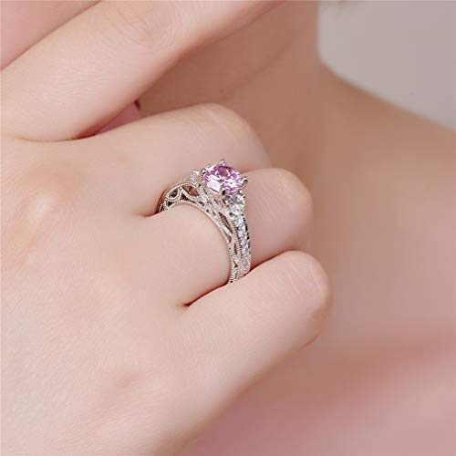 Yazilind - Fedi nuziali in argento Sterling S925 con zirconia cubica rosa e zirconia cubica, per anniversario, promessa, matrimonio, fidanzamento e Argento, 11, cod. 1058R9777--6