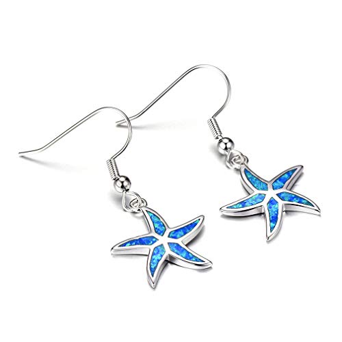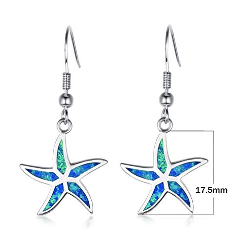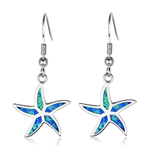 Yazilind - Orecchini pendenti in argento Sterling 925 con opale a forma di stella marina e Argento, colore: Blu, cod. 1961E0050