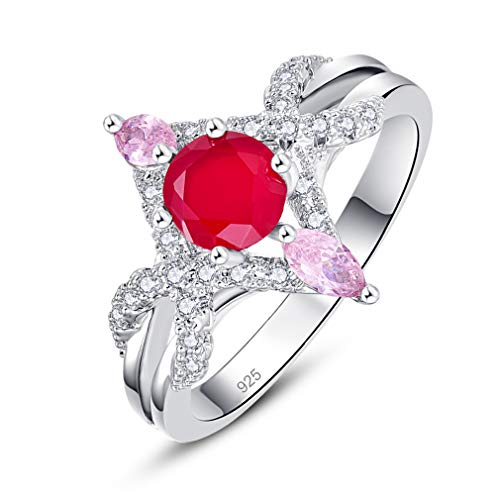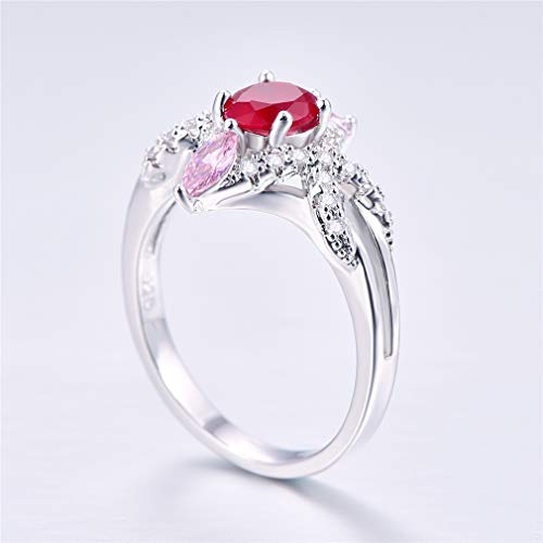 Yazilind S925 - Anello di fidanzamento da donna, in argento Sterling con zirconia cubica ovale rotonda e Argento, 11, colore: Rosso, cod. 1058R9595--6