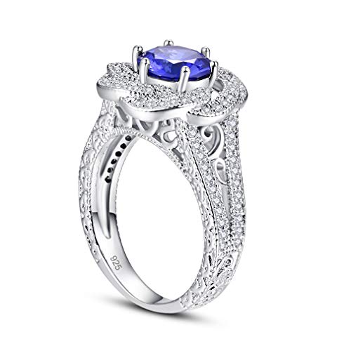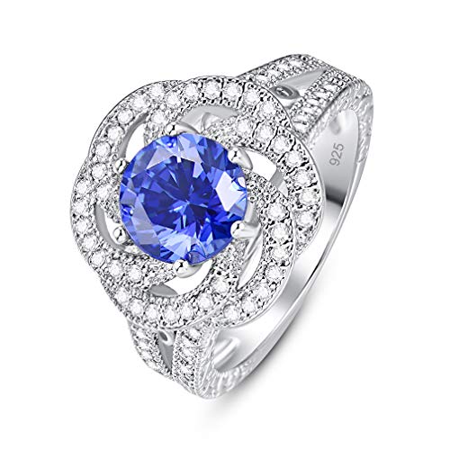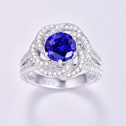 Yazilind S925 - Anello nuziale in argento Sterling con zirconia cubica rotonda, da donna e Argento, 11, colore: Blu, cod. 1058R9674--6