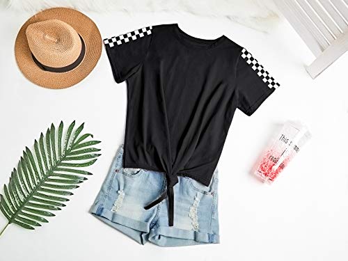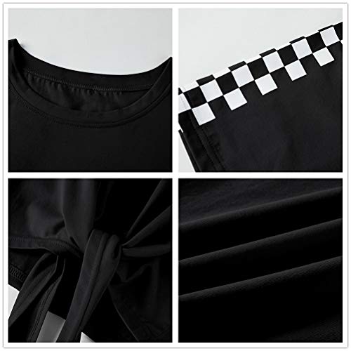 YBENLOVER Maglietta a maniche corte estiva a maniche corte con motivo scozzese e girocollo, per bambine, Nero, 5-6 Anni