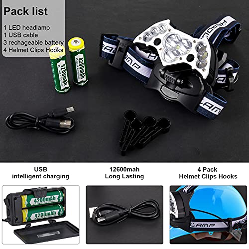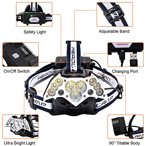 YBQZ Lampada Frontale LED, Super Luminoso Torcia Frontale Lampade da Testa USB Ricaricabile con 2000 Lumen e 4 Modalità, 90° Angoli di Luce Regolabili per Campeggio, Corsa, Pesca, Ciclismo