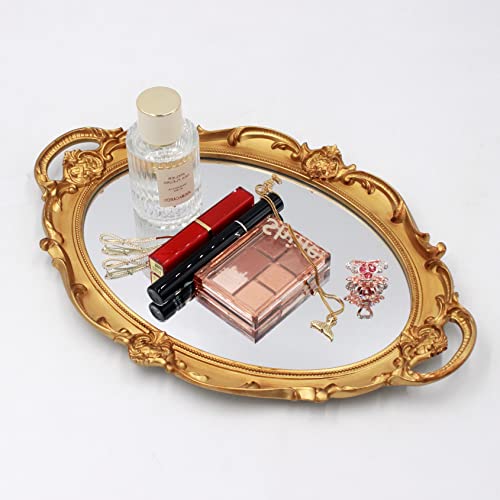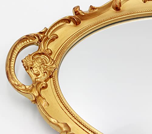Design multifunzionale: specchio da parete con cornice barocca in oro vintage, anche un elegante vassoio a specchio in oro per trucco e gioielli