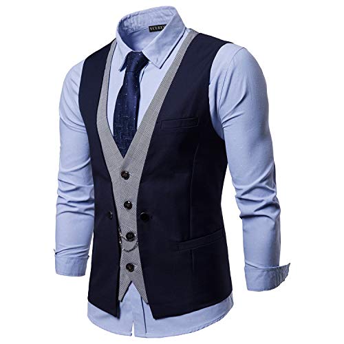 YCUEUST Fake Due Pezzi Gilet Uomo Slim Fit Blazer Senza Maniche Cerimonia Waistcoat Blu 1 X-Large