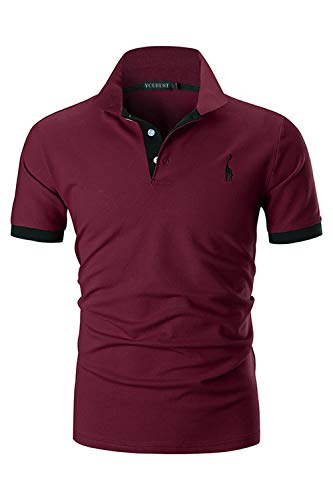 YCUEUST Uomo Cotone Giraffa Ricamo Manica Corta Polo Tennis Golf Casual T-Shirt Rosso Medium