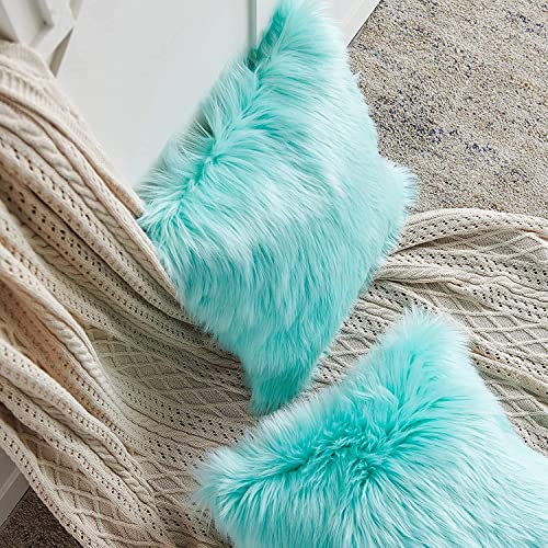 YDFYX Federa Cuscino,in Lana Artificiale Fodera per Cuscino, Super Soft Fodera per Cuscino in Pelle Deluxe Home Decor Decorativo Camera da Letto Federa Divano (2Pcs Azzurro, 45X45 cm)