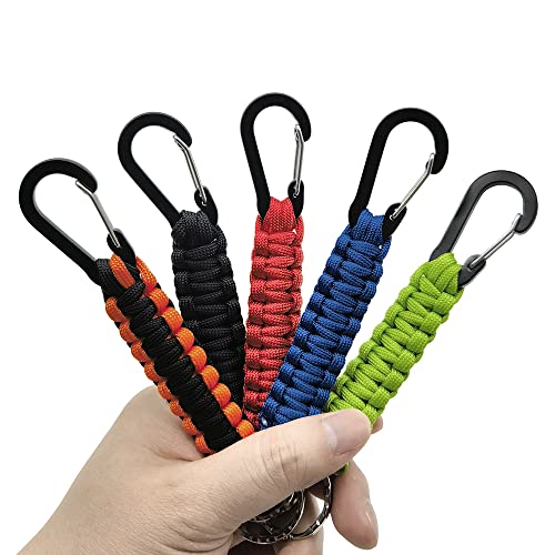 YDHfdc Portachiavi in Paracord 5 Pezzi Portachiavi in Corda Intrecciata All'aperto Intrecciato Moschettone Adatto per Outdoor Campeggio Trekking Zaino (5 Colori)