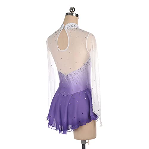 YDHTIZ Donne Pattinaggio sul Ghiaccio Tuta da Gara Donna Adulto Generoso Figura Pattinaggio Abito Viola Gradiente Dolcevita Bambino Ragazze Strass Ginnastica Body (M,Purple)