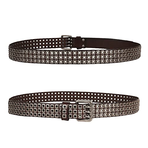 YDYBY Punk Rock 3 Righe Rivetto Cintura Pelle 105cm-125cm Lunghezza Moda Lavorata a Mano Vera Pelle Vintage Cintura per Uomo Donne,Marrone,125CM