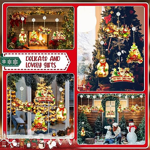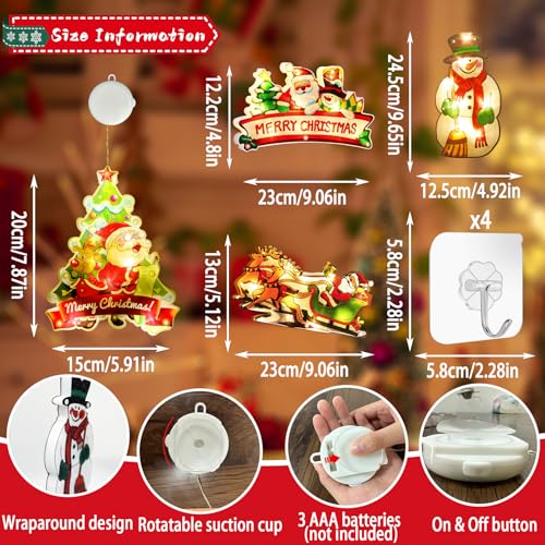 YeahBoom 4 Pezzi Lampada a Ventosa Per Natale,LED Luci Finestra Ventosa Natale,Motivo Dipinto Su Entrambi i Lati,Bordi Sigillati,Ttimer,Funzionamento a Batteria (senza pile), Per Decorazioni Natalizie