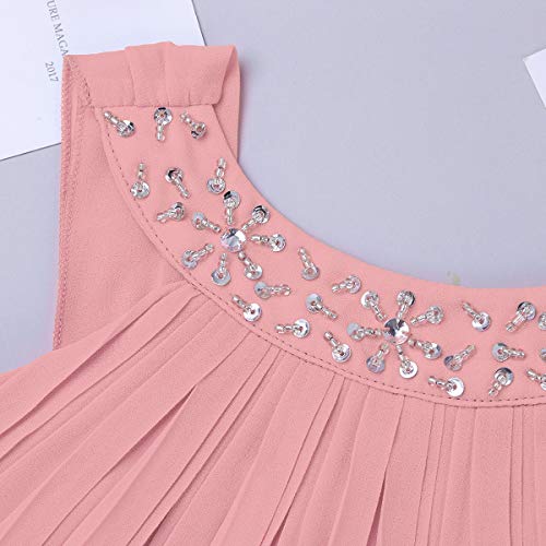 Yeahdor Abito Cerimonia Bambina Ragazza Vestito Damigella Abito Lungo Elegante Costume Estivo con Fiocco Dancewear Abito da Sera Cocktail Compleanno Festa Matrimonio Rosa 14 Anni