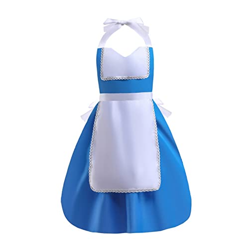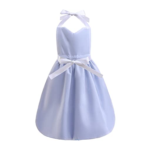 Yeahdor Ragazzine Principessa Fiocco Grembiule Grembiulino Carino Halter Abiti di Spettacoli Teatrali Senza Schienale Costume di Cosplay Princesess Compleanno Bianco Blu 2-3 Anni