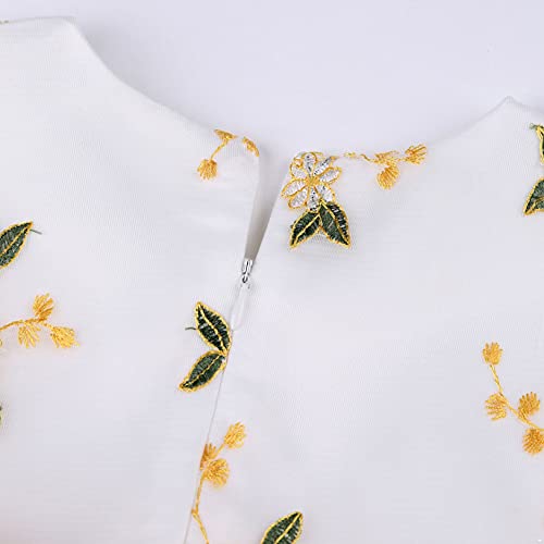 Yeahdor Vestito da Bambina di Fiori Abito Elegante Estivo da Cerimonia Nuziale Damigella Compleanno tutù Pizzo Floreale Abiti da Principessa Tulle Abito da Sera Formale Giallo 8-9 Anni