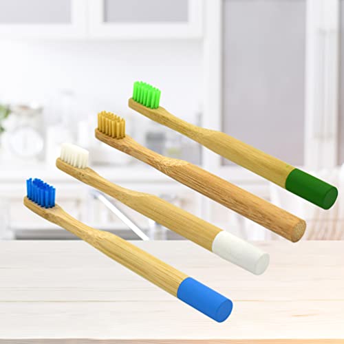 YeahiBaby Spazzolini Bamboo e Nylon per Bambini 100% Biodegradabile Eco-friendly 4 Pezzi (rosa, verde, blu e bianco)