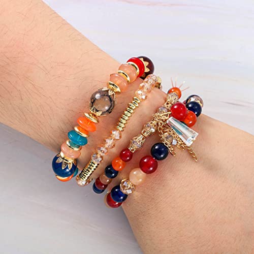 Yean Braccialetto da donna Boho colorato perline braccialetti set nappa elastico pietra perline braccialetto gioielli (confezione da 4)