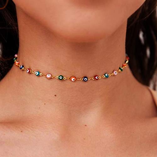 Collana girocollo colorata di circa 31 cm di lunghezza, dimensione di estensione: 10 cm, può essere regolato quello che si desidera.