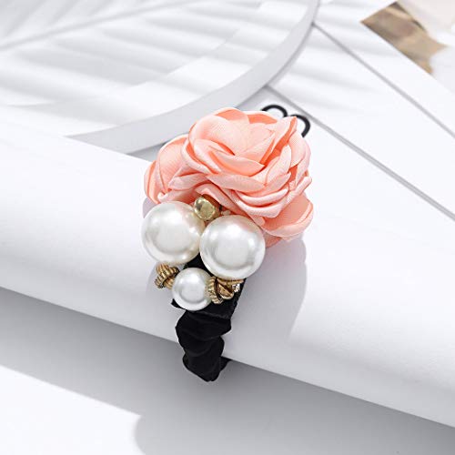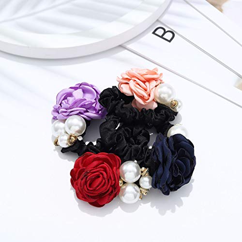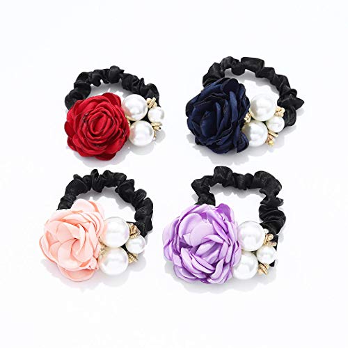Yean - Set di 4 elastici per capelli con perle e fiori, accessori per capelli rossi per donne e ragazze
