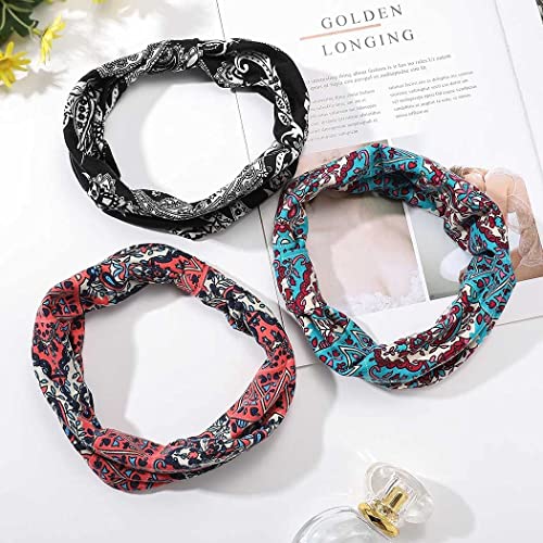 Yean Fascia per Capelli Donna Boho, Fasce Larghe per Donna Yoga Stampa Floreale Fasce per Capelli, Accessori per Capelli Elastici NodoTurbanti per Donne e Ragazze, confezione da 3