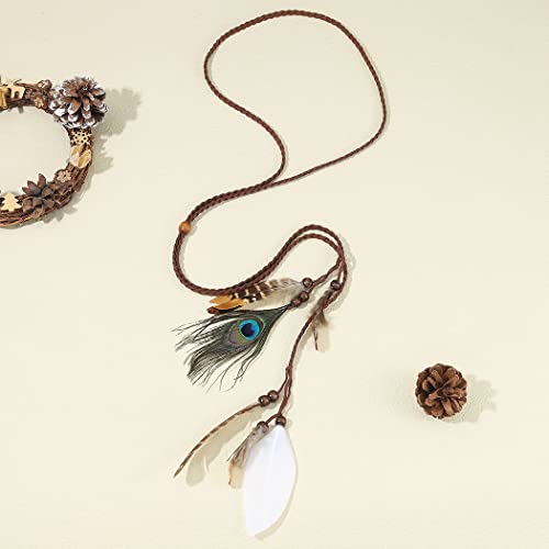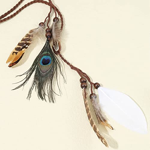 Le fasce in piuma tribale sono funzionali, facili da usare e impiegano pochi secondi per un look impeccabile. Ideale per abiti boho chic, oltre a un costume, costume tribale, costume da nativo, abito in maschera, stile naturale indossabile tutti i giorni, lunghezza regolabile.