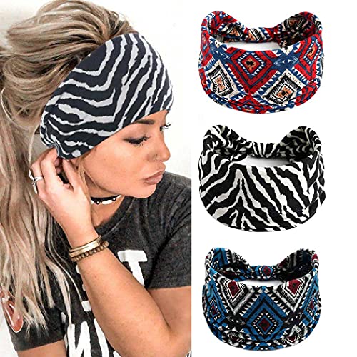 Yean - Fascia elastica per capelli con turbante a righe, colore nero, elasticizzato, accessorio per la testa di yoga per donne e ragazze (confezione da 3)
