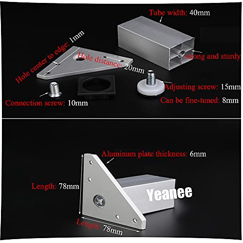 Yeanee 4 Lega di Alluminio Gambe da Tavolo Regolabili 6-40 cm Piedi per Mobili, Argento Gambe per Mobili Quadrati, per Ripiani Letto Banco da Lavoro, con Preforato