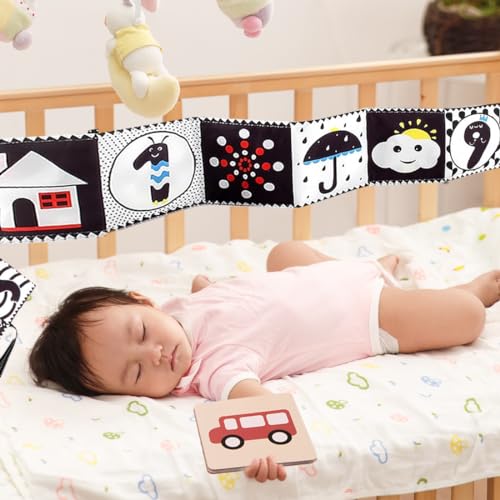 YEAPEAK Immagini Alto Contrasto per Neonati, Giochi Neonato, Libro in Tessuto Bianco e Nero, Carta Flash per Bambini, Set di Giocattoli a Contrasto, per Bambino da 0-12 Mesi in su Giochi