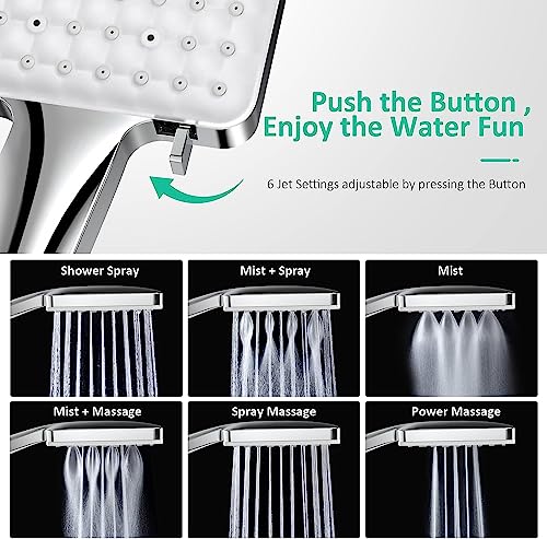 Soffione doccia massaggiante doccia a pioggia con 6 tipi di spruzzo: getto shampoo nebbia + getto pioggia, nebbia + getto massaggiante, getto massaggiante, getto forte concentrato. Una tale varietà di modalità può offrirti il miglior relax per tutto il corpo e la mente