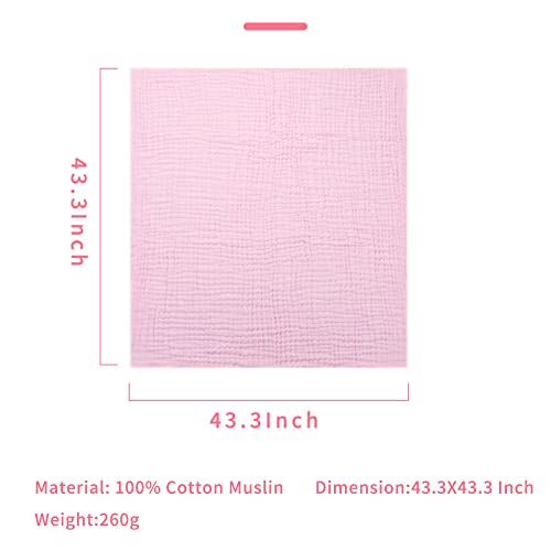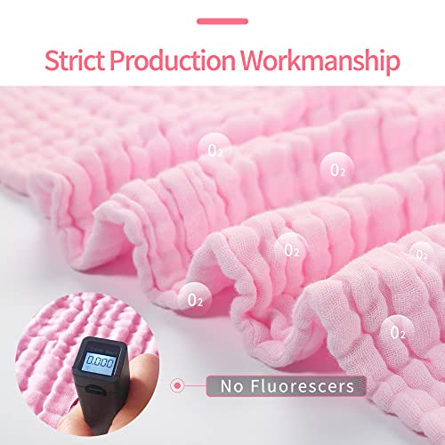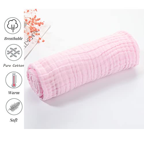 YEBON 2 asciugamani da bagno in mussola per bambini, super morbido, in cotone, 6 strati, coperta per neonati e neonati, 100 x 100 cm, colore rosa