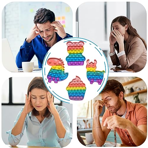 Yeefunjoy 4 Pezzi Pop Bubble Fidget It Toy Set, Dinosauro Alpaca Orso Gelato, Giocattoli Sensory Push, Gioco Antistress Rilassante per Adulti e Bambini, Bomboniere per Feste Regali di Compleanno