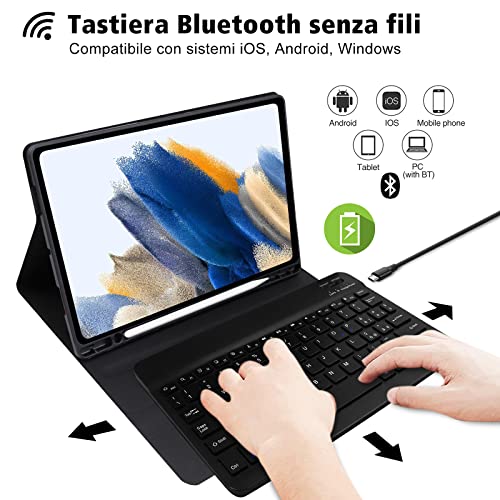 Yeegnar Custodia con Tastiera per Samsung Galaxy Tab A8, Italiano QWERTY per Samsung Galaxy Tab A8 10.5 2021 (SM-X200/ X205 / X207), Bluetooth Wireless (Stilo non incluso)