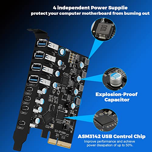 【Trasferimento ad Alta Velocità】Velocità di trasferimento fino a 10 Gbps, 1 volta più veloce della precedente generazione USB 5Gbps, questa scheda PCIE USB 3.2 gen 2 è un must per le unità esterne ed è ideale per il backup dei file, l'editing video e il recupero dei dati.