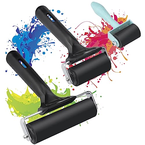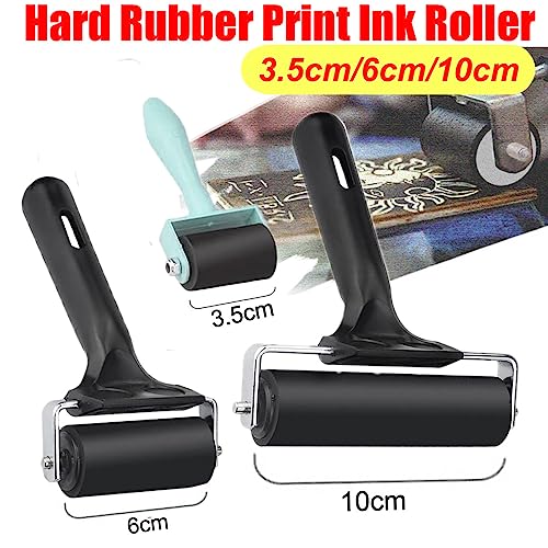 Yeemeen Rullo per Inchiostro, 3Pcs Rullo Brayer, Rullo Gomma Rigida 3,5cm 6cm 10cm con Manico per Stampaggio, Stampa, Carta da Parati e Artigianato