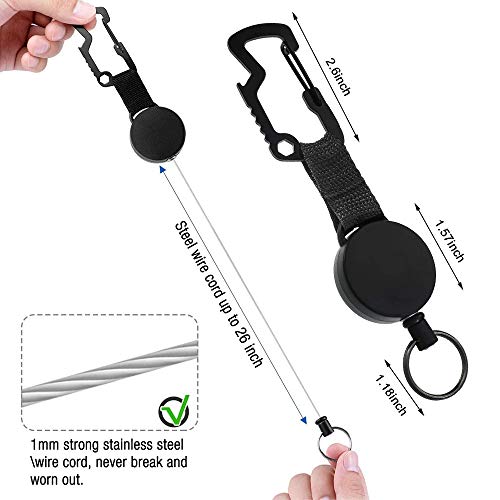 [Elevata elasticità] La lunghezza della fune metallica può essere estesa a circa 60 cm-65 cm e allungata in modo uniforme. Il portachiavi a scomparsa ha un alto grado di elasticità dovuto allindurimento del materiale ed è durevole.
