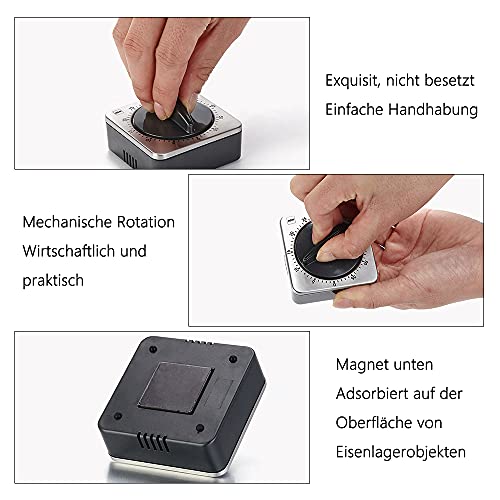 YeenGreen Timer da Cucina Meccanico Magnetico, Promemoria Timer da Cucina, Temporizzatore Cucina, Timer da Cucina Meccanico Acciaio Inox, 60 Minuti, con Magnete e Allarme Acustico