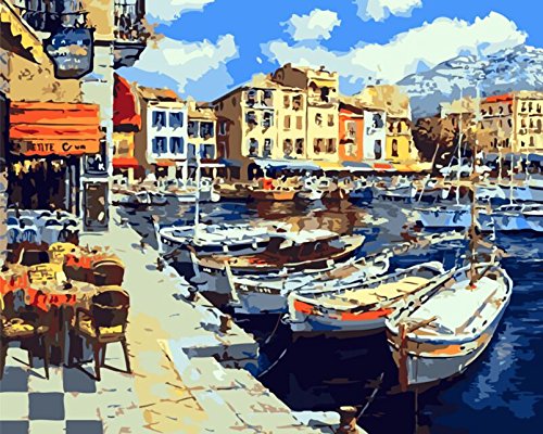 YEESAM ART New vernice da numeri per adulti e bambini - Sin Prisa porta Bay città 40x50cm in lino - DIY Digital painting by Numbers Kits su tela