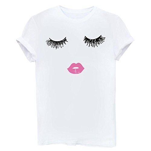 Yeesea Donna Estate Maglietta Manica corta Stampare Cotone Camicetta T-shirt bianco Small