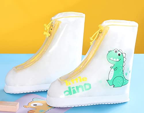 Yeeteepot Bambini Copriscarpe Impermeabili in PVC Copriscarpe Antiscivolo e Riutilizzabili Pieghevole per Le Giornate di Pioggia e Neve e Fango Dinosauro Verde XXXL