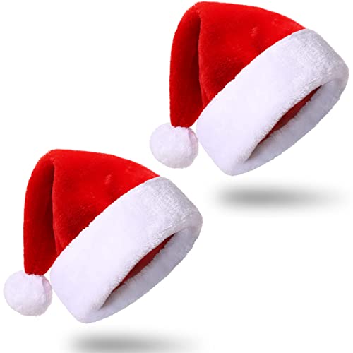 Yefun Cappello da Babbo Natale, Cappello di Natale per Adulti, Cappellino di Natale per Donna Uomo, Cappello Natalizio di Velluto, Costumi di Babbo Natale, Berretto Rosso & bianco (2 Pack)